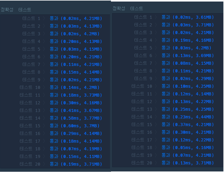 좌측은 기존 코드, 우측은 GPT로 리팩토링한 코드의 실행 결과